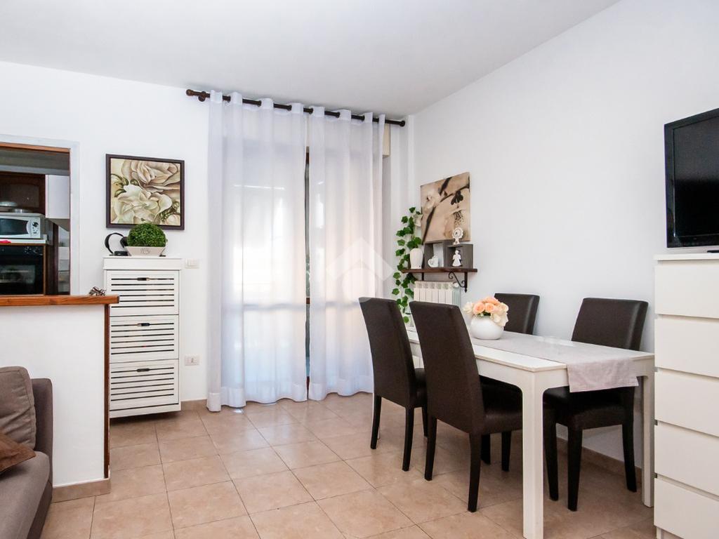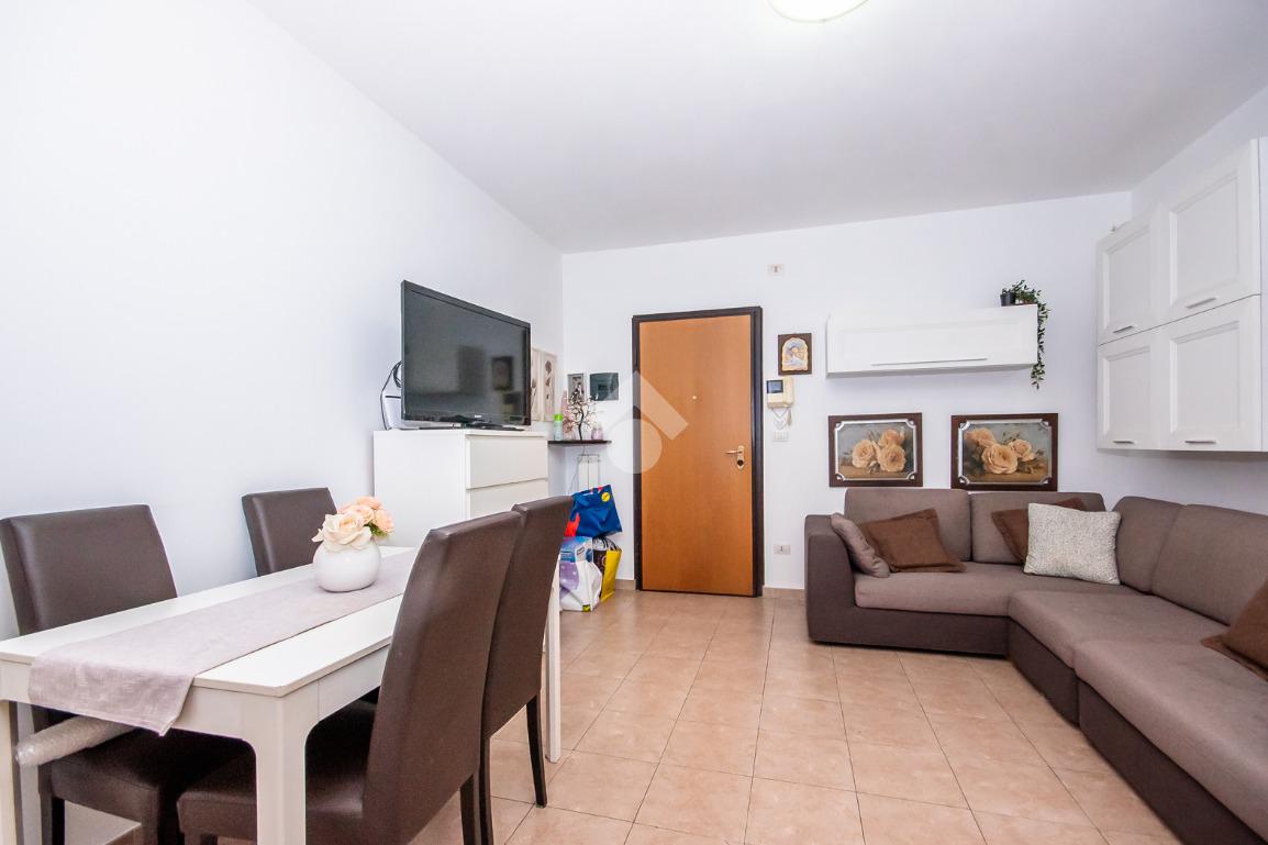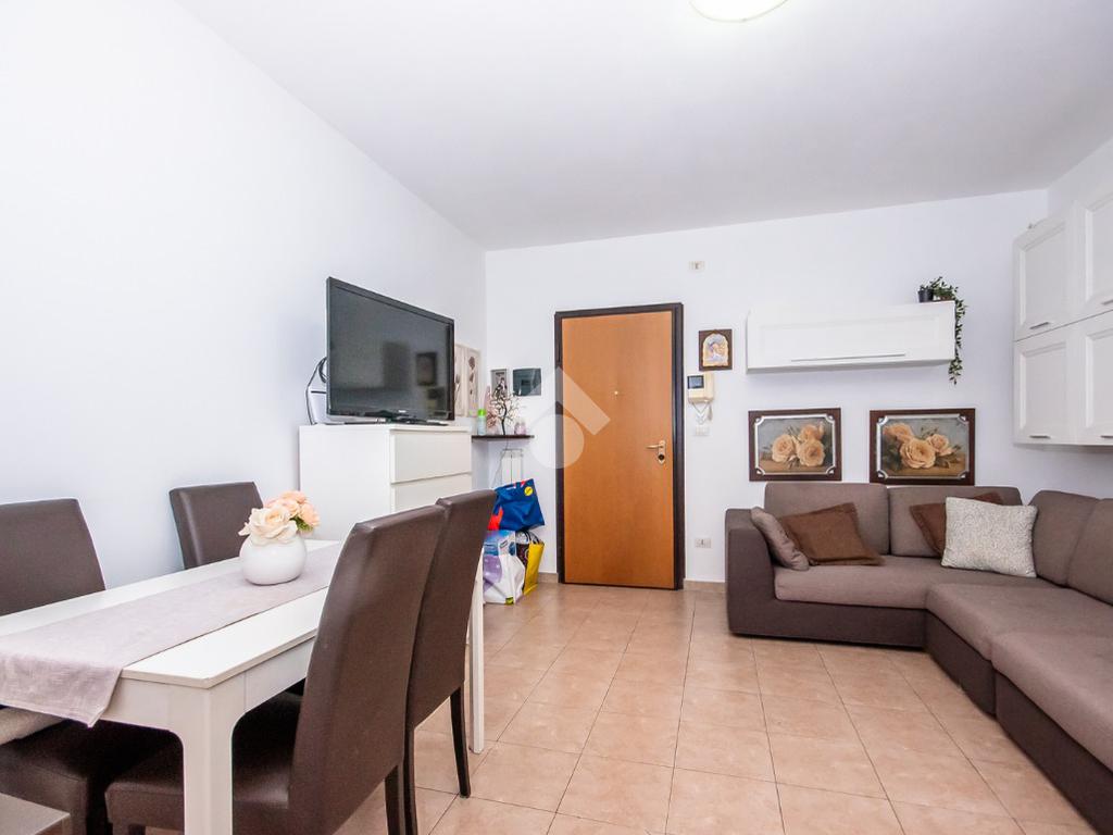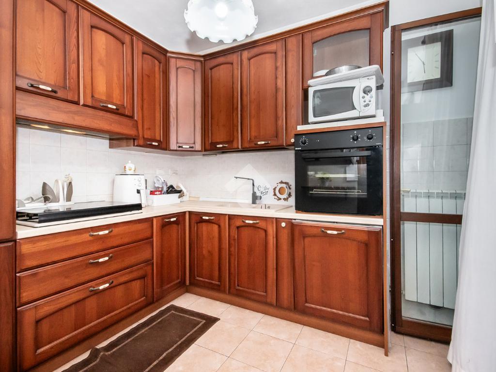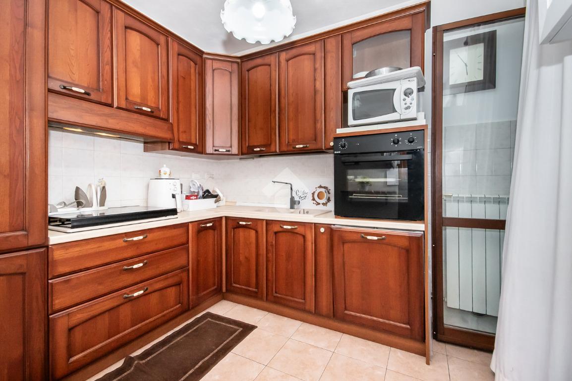 L’alloggio ha ingresso sul soggiorno con uscita diretta al terrazzo. Successivamente si trova il disimpegno che accompagna alle altre stanze. La cucina è spaziosa e anch’essa permette l’accesso al terrazzo.