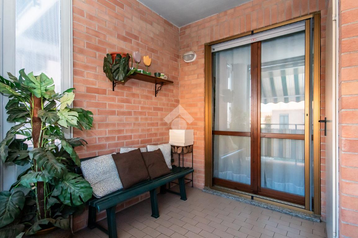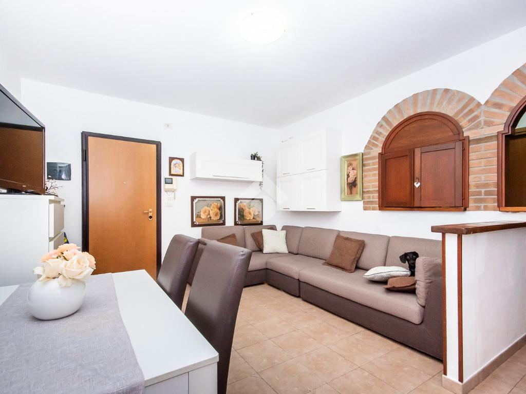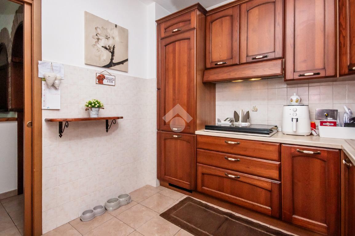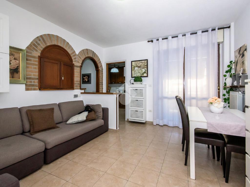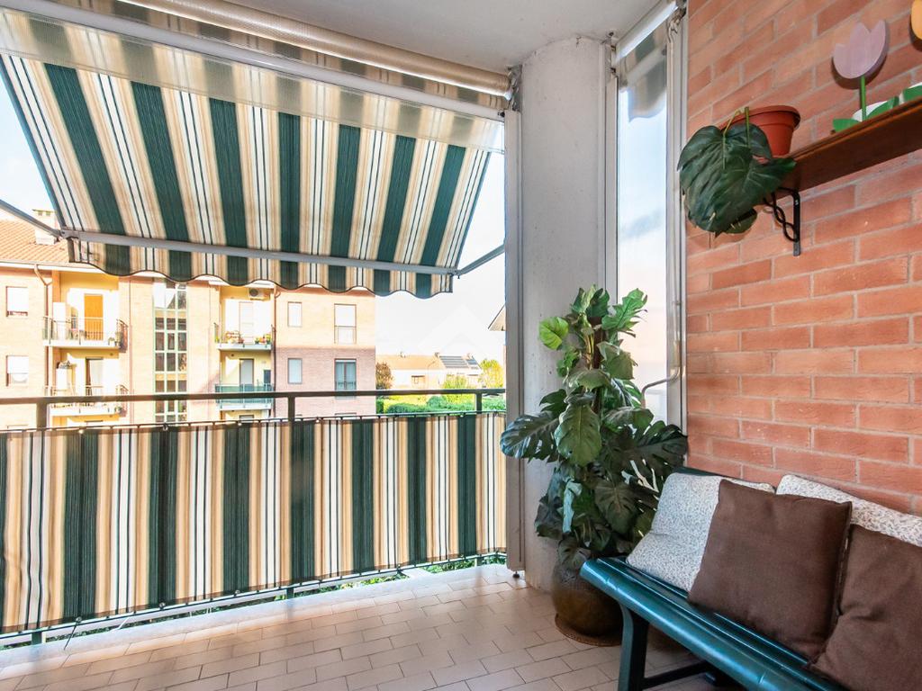 L’alloggio ha ingresso sul soggiorno con uscita diretta al terrazzo. Successivamente si trova il disimpegno che accompagna alle altre stanze. La cucina è spaziosa e anch’essa permette l’accesso al terrazzo.