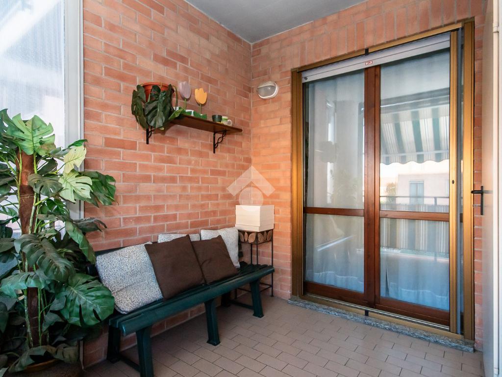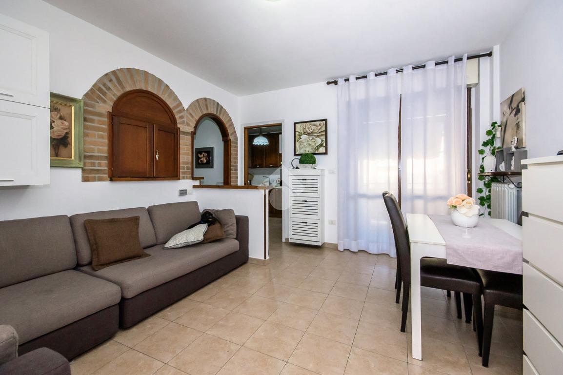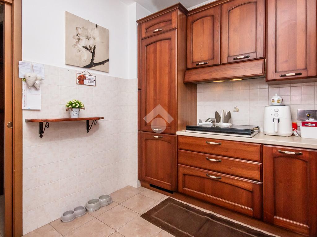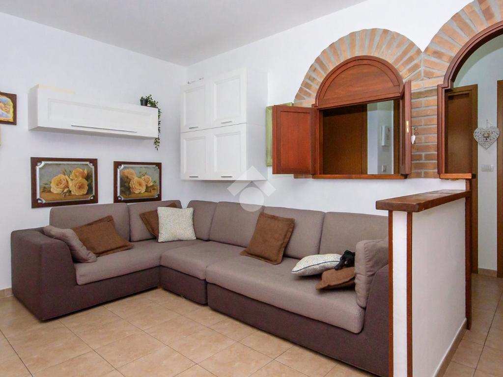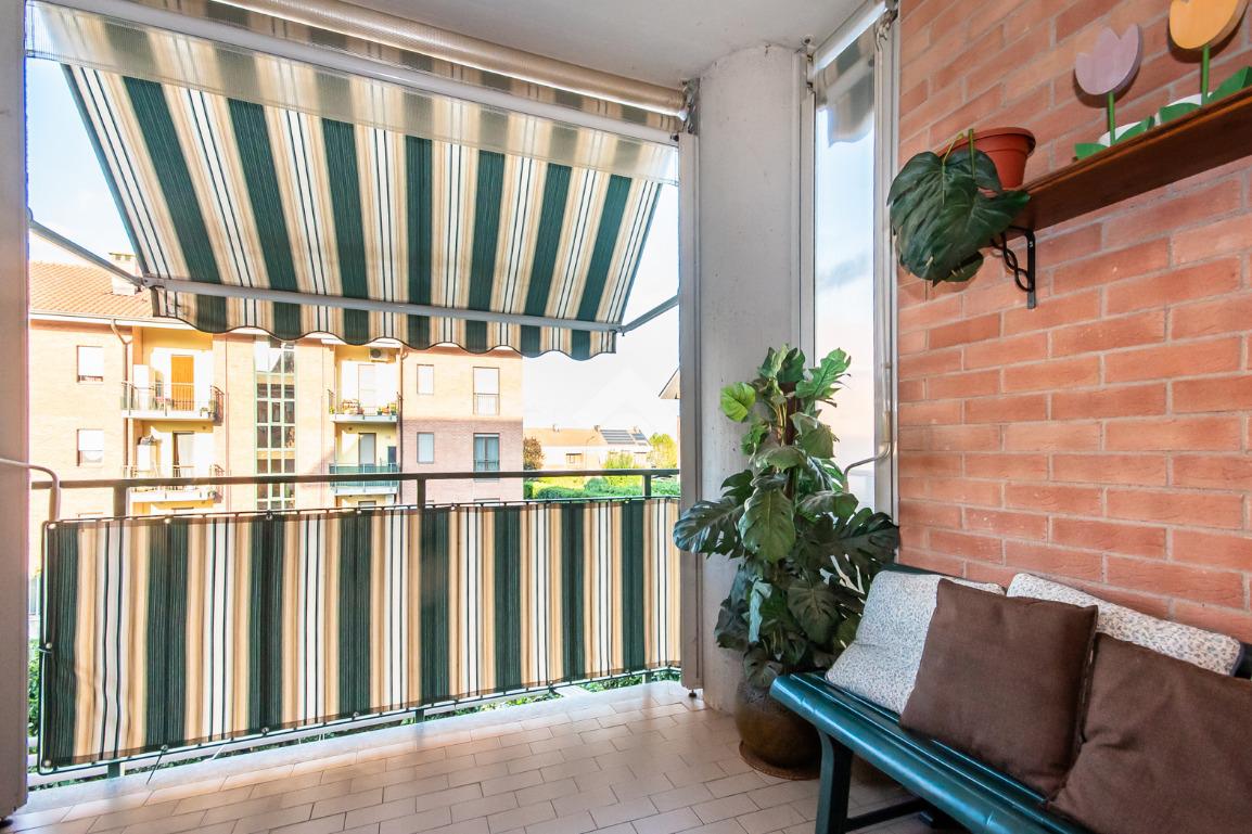 L’alloggio ha ingresso sul soggiorno con uscita diretta al terrazzo. Successivamente si trova il disimpegno che accompagna alle altre stanze. La cucina è spaziosa e anch’essa permette l’accesso al terrazzo.
