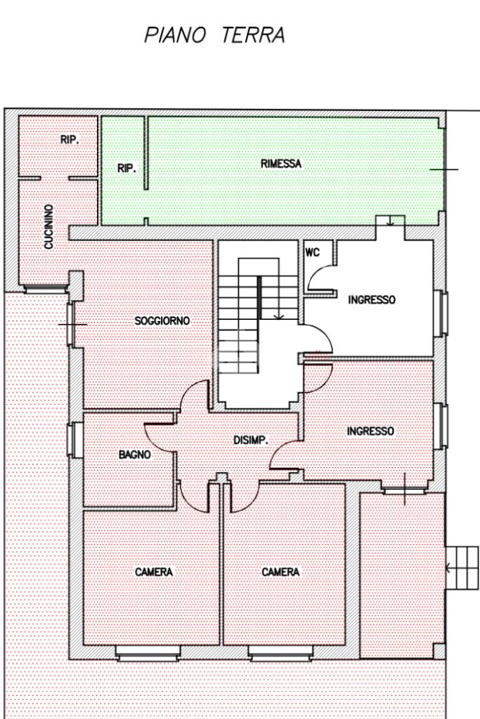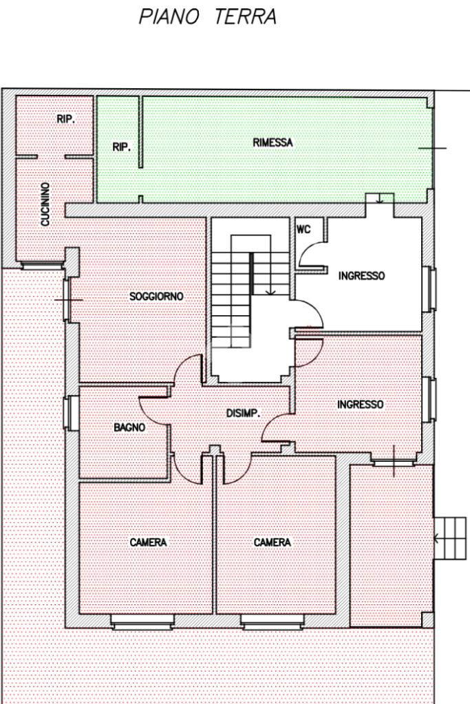 L’appartamento si trova al piano terra di una trifamiliare situata in una zona residenziale tranquilla ma comoda ai principali servizi. L’area esterna comprende il giardino di 140 mq.